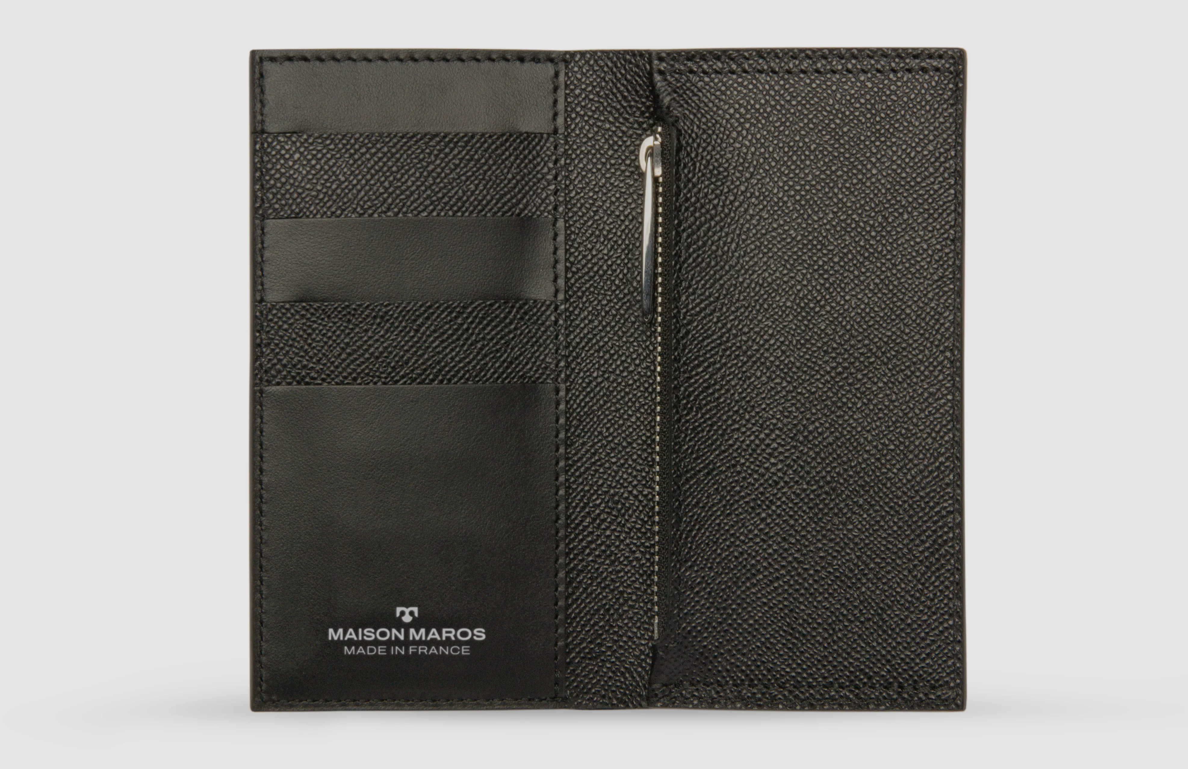 Il est sublimé par la signature Maison Maros, délicatement embossée sur l’avant, et une dorure couleur argent apposée à l’intérieur, gage de raffinement discret.