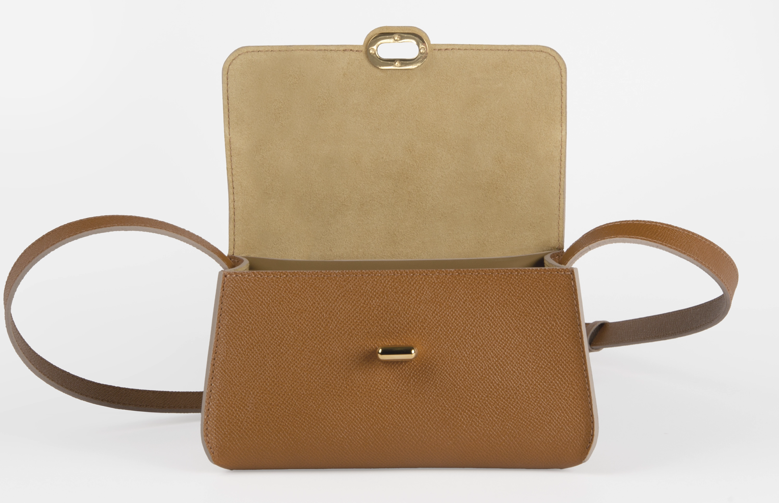 Sac à main en cuir de vachette, façonné selon un subtil jeu de pliages du cuir et doublé d’un suède délicat, choisi pour la douceur et la chaleur qu’il apporte au toucher. Son intérieur abrite une poche plaquée et une signature Maison Maros délicatement apposée.